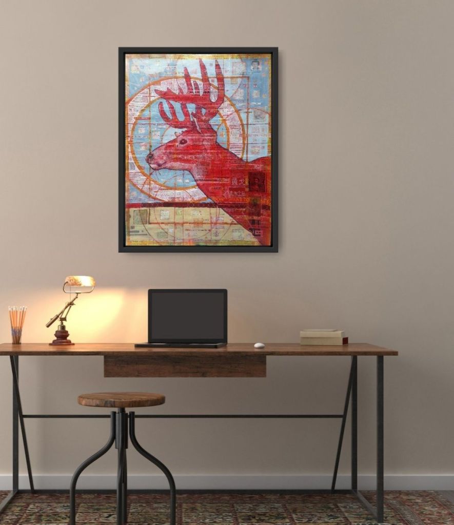 Below are additionally photos showing detail and how the painting looks in a variety of room settings.