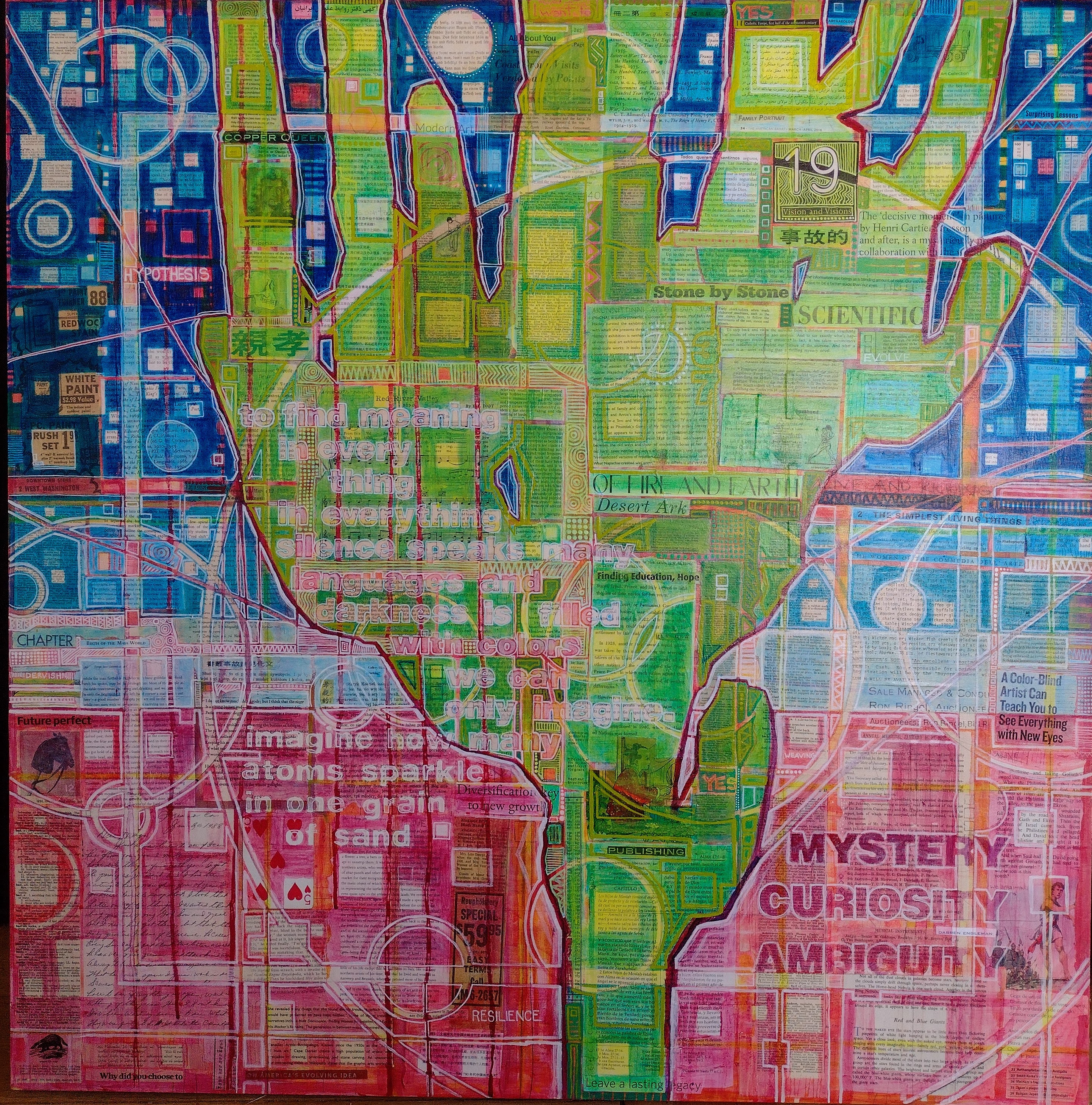Mixed media painting on cradled wood panel titled There is something beyond the horizon. The subject is a Saguaro cactus, Carnegiea Gigantea. 38×38 inches, 97×97 cm, unframed. Available for $4700.